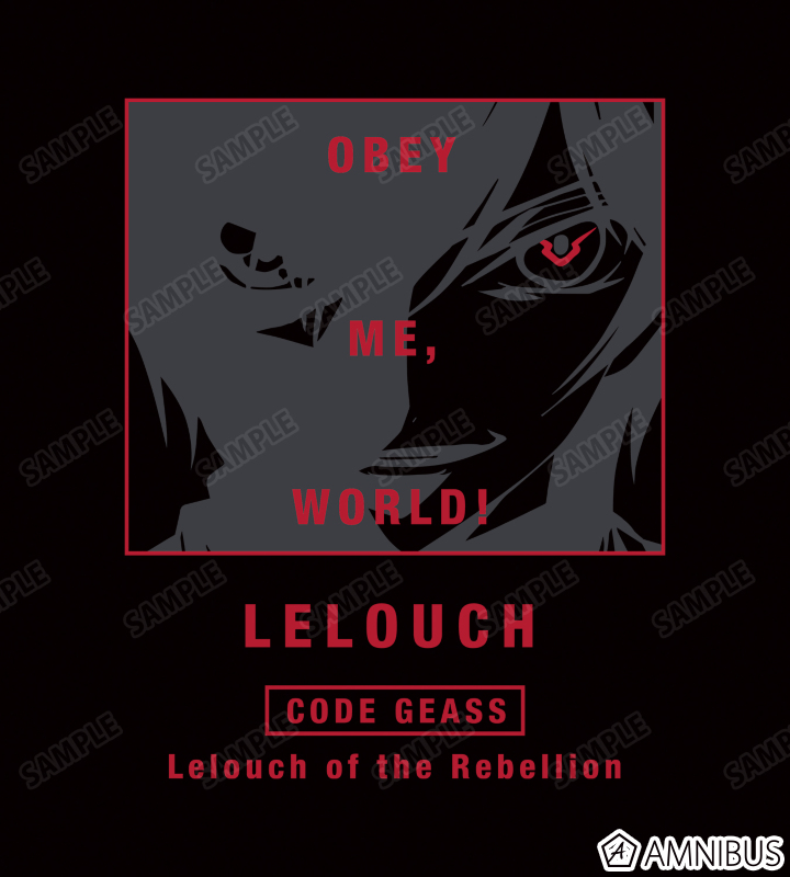 ルルーシュをフレーミングし、台詞とキャラクター名、作品タイトルの英訳を組み合わせて背面に大きくプリントしました。