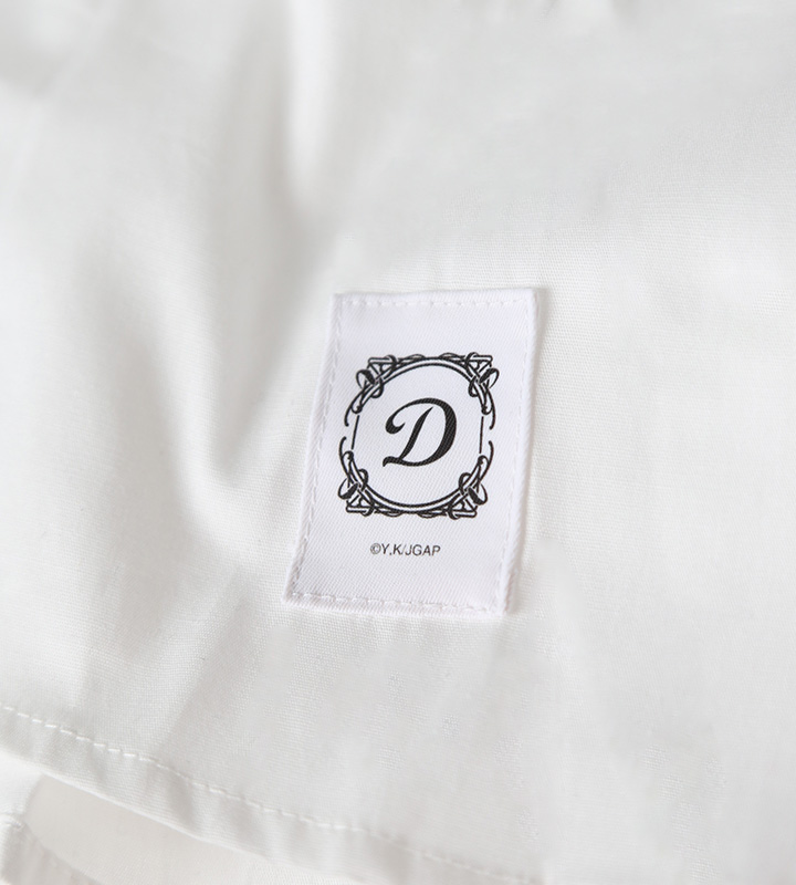 裾にはさりげなく「D」をデザインした飾りタグを縫い付けています。