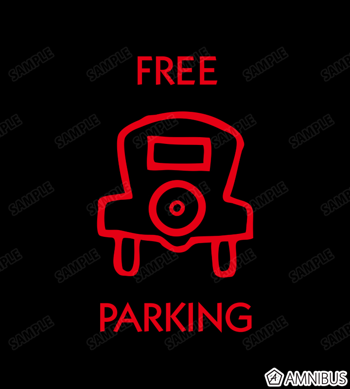 「FREE PARKING」のマス目のイラストをメインにレイアウトしたデザインに仕上げました。
