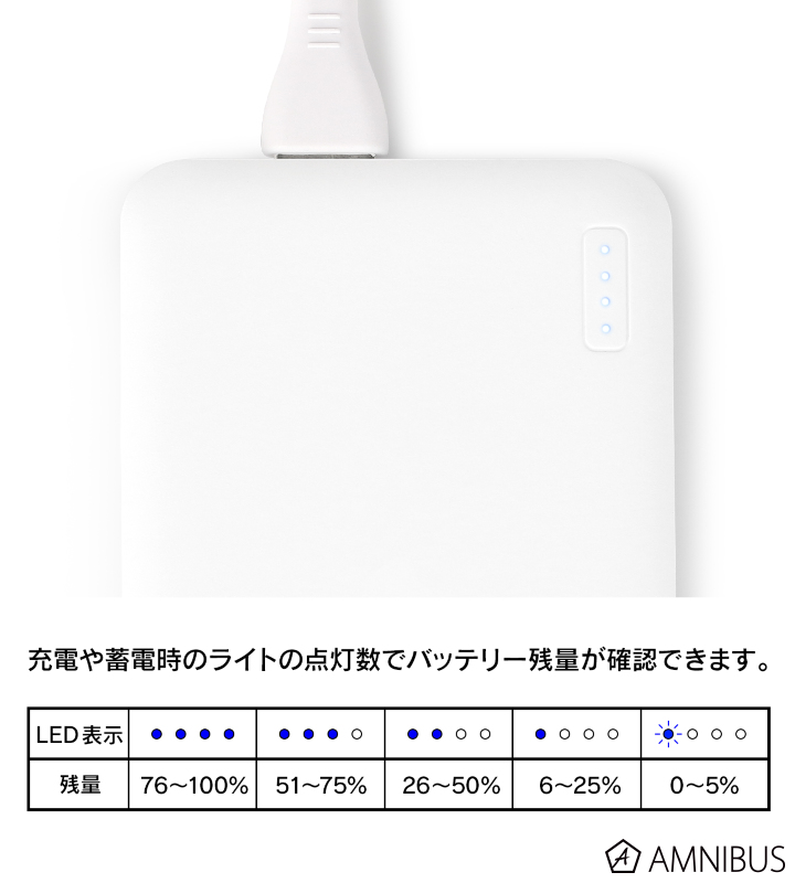 | 付属品 | 取扱説明書 兼 保証書 microUSB ケーブル(30cm) ※充電専用 ※接続する機器に合わせた給電ケーブルをご用意ください |