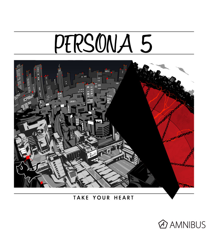 夜の東京風景が剥がれているところから覗くメメントスと、走るモルガナが東京で暗躍する怪盗団を表しています。