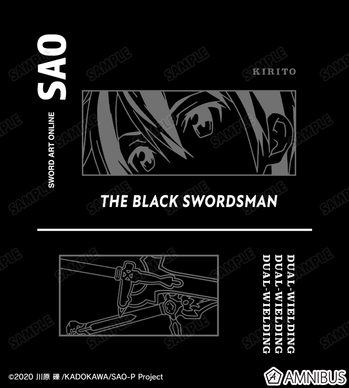 キリトの目元と、二刀流の剣《ダークリパルサー》と《エリュシデータ》を組み合わせ、文字と線画をメインとしたシンプルでスタイリッシュなデザインに仕上げました。