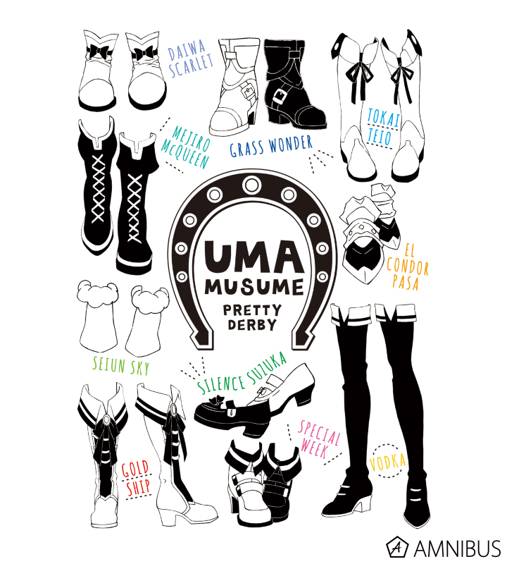 ウマ娘たちが履いている靴を線画にし、それぞれのキャラクターカラーと合わせてデザインしました。
