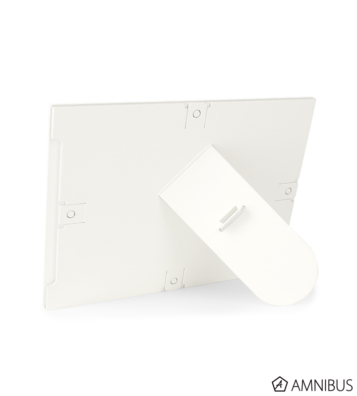丈夫なマット紙で挟み込み、裏面にスタンドと壁掛け用の穴を搭載しました。