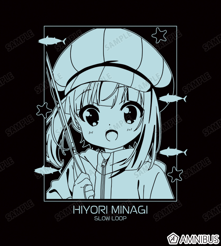 海凪ひよりをフレーミングし、魚やヒトデのモチーフ、名前などと合わせて背面に大きくレイアウトしました。