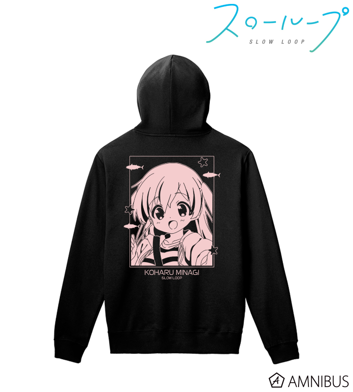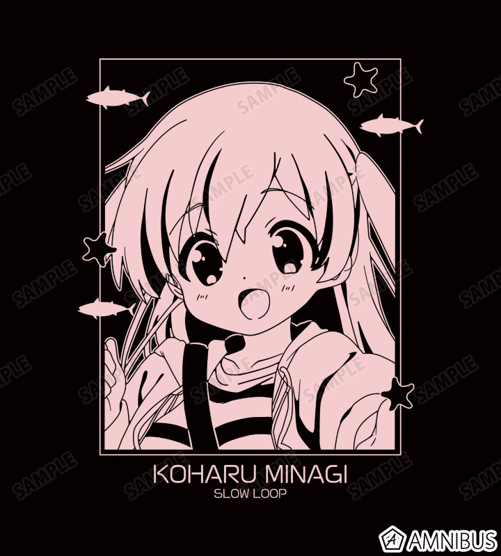 海凪小春をフレーミングし、魚やヒトデのモチーフ、名前などと合わせて背面に大きくレイアウトしました。