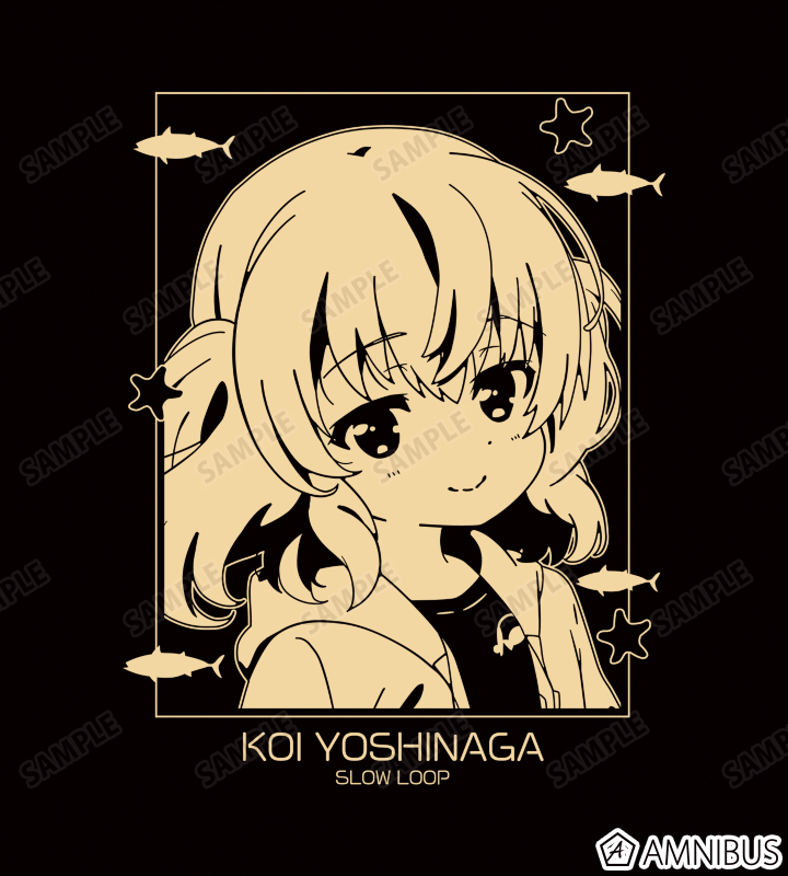 吉永 恋をフレーミングし、魚やヒトデのモチーフ、名前などと合わせて背面に大きくレイアウトしました。