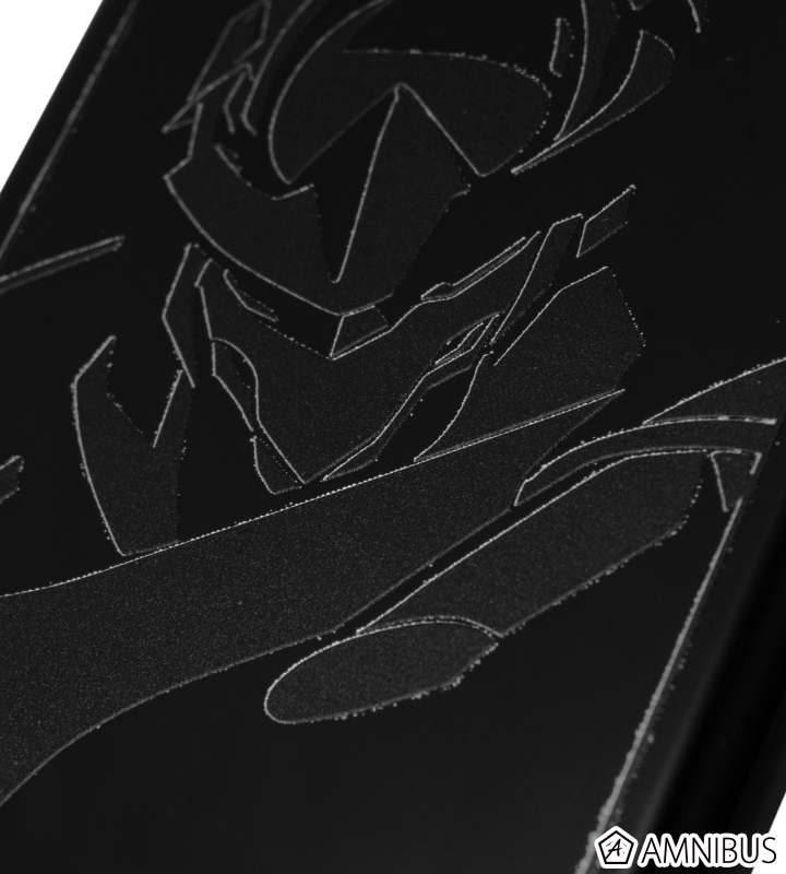 ルルーシュが搭乗する蜃気楼のアップと、形式番号や世代数などを使用したデザインに、黒色の箔プリントを施してメタリックに仕上げました。