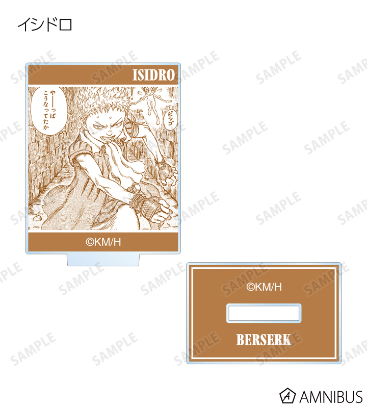 ガッツ、パック、キャスカ、ファルネーゼ、セルピコ、イシドロ、シールケ、イバレラ、グリフィス、ジュドー、ピピン、リッケルト、シャルロット、フェムト、ボイド、スラン、ユービック、コンラッド、ゾッド、髑髏の騎士をコレクションしやすいミニサイズのアクリルスタンドに仕上げました。