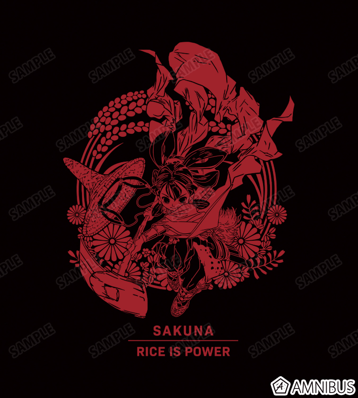 サクナヒメを名前と『RICE IS POWER』の文字と合わせて背面に大きくレイアウトしました。