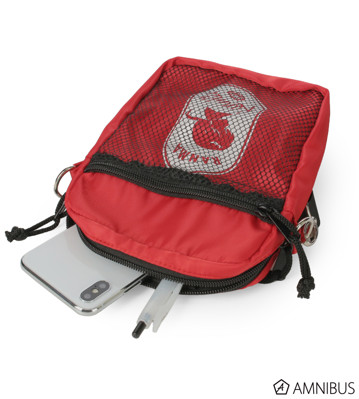 使い勝手の良いメッシュポケットが特徴で、携帯や財布など小物の収納にぴったりなサイズ感です。