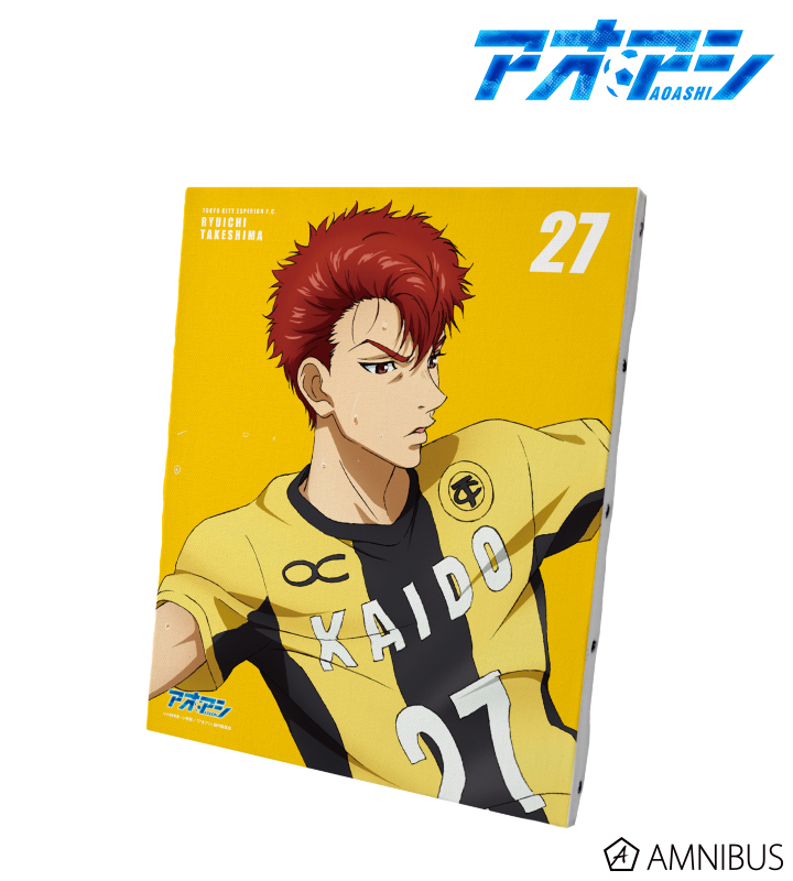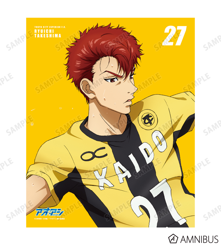 竹島 龍一のプレー中のイラストをメインに、チームカラー・チーム名・背番号・選手名と組み合わせてシンプルなデザインに仕上げました。