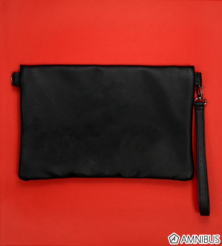 表面は銀色の箔プリントを施したモルガナをワンポイントとして使用し、中面は作品をイメージした赤と黒の星柄で仕上げています。