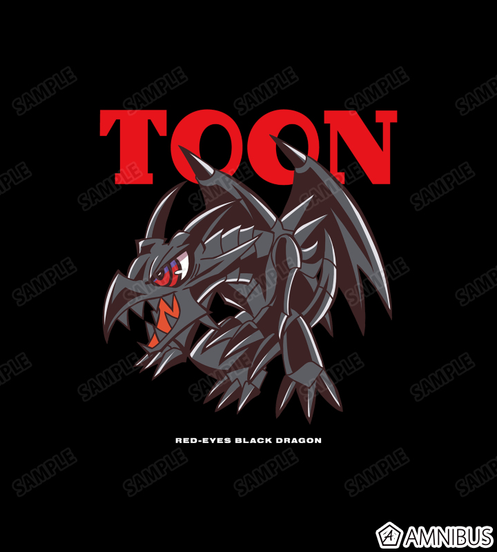 真紅眼の黒竜がトゥーンモンスターになったイメージで描き起こしたちびキャライラストをメインにデザインしました。