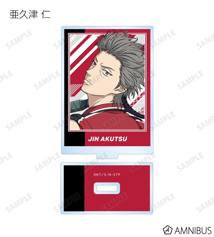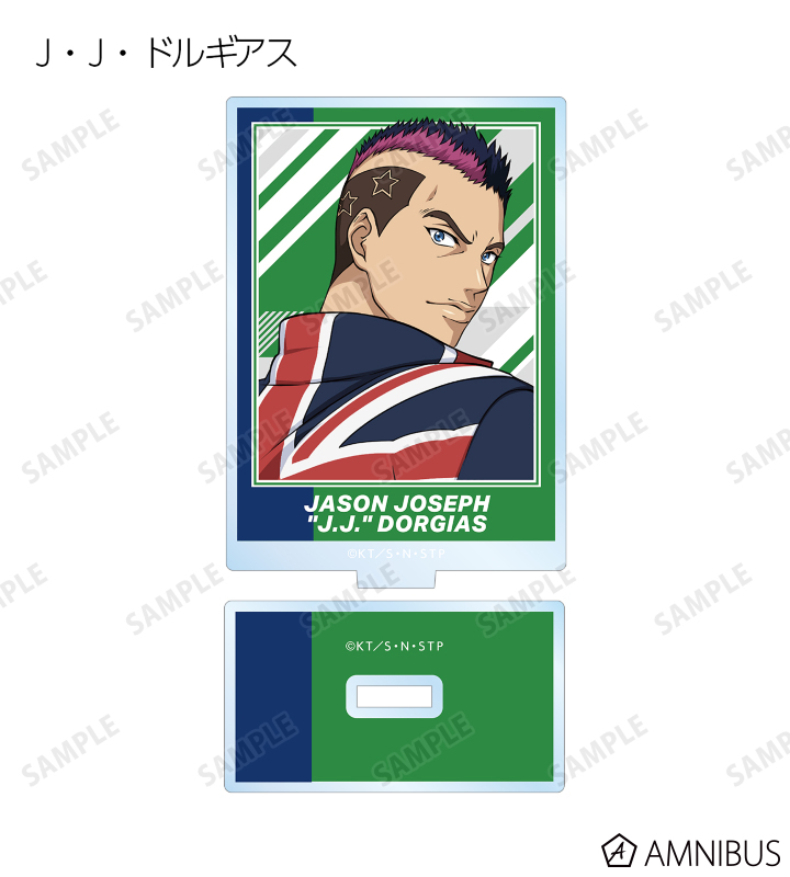 描き下ろしイラストの越前リョーマ、亜久津 仁 、跡部景吾、仁王雅治、白石蔵ノ介、種ヶ島修二、ゼウス・イリオポウロス、J・J・ドルギアス、アレキサンダー・アマデウス、プランス・ルドヴィック・シャルダールをアクリルスタンドに仕上げました。