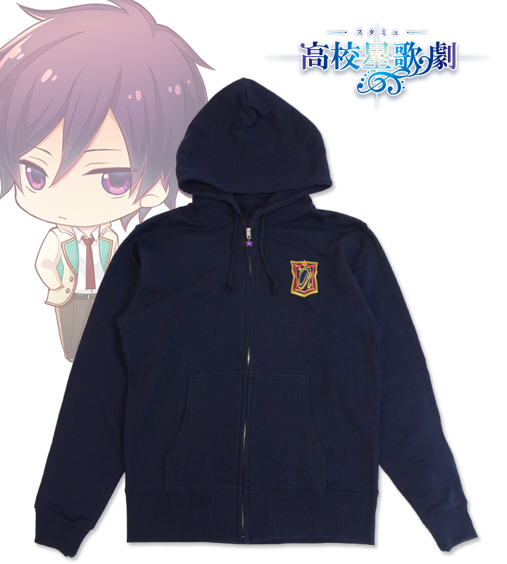 胸に綾薙学園の校章ワッペン、パーカーの裏側にはチーム鳳のメンバーカラーの5つの星の刺繍、ジッパーには各キャラクターカラーの専用チャームが付いています。
