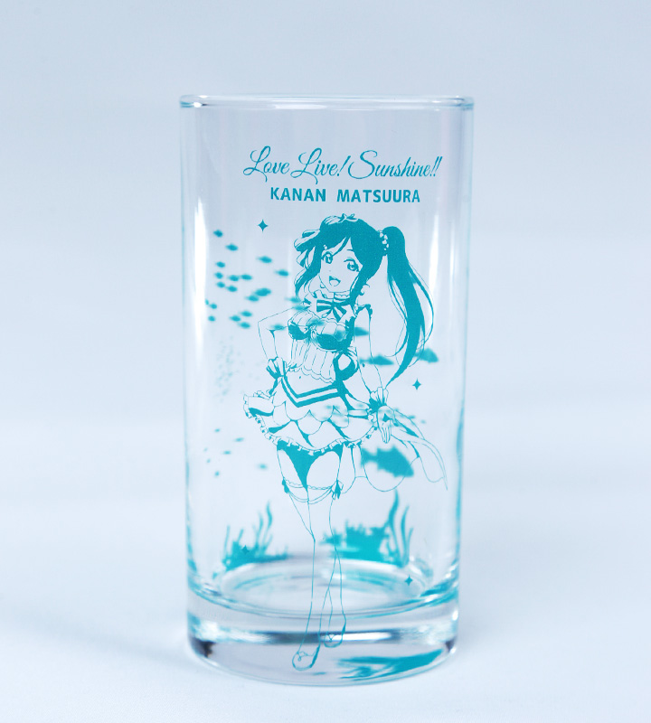 恋になりたいAQUARIUMのワンシーンをモチーフにした、Aqoursメンバーと水槽をイメージしたデザインがプリントされたグラスです。