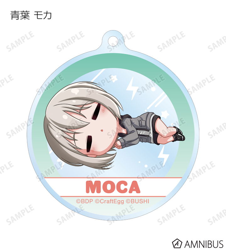 戸山 香澄、花園 たえ、牛込 りみ、山吹 沙綾、市ヶ谷 有咲、美竹 蘭、青葉 モカ、上原 ひまり、宇田川 巴、羽沢 つぐみがころんと寝ているちびキャラを新たに描き起こし、アクリルキーホルダーに仕上げました。