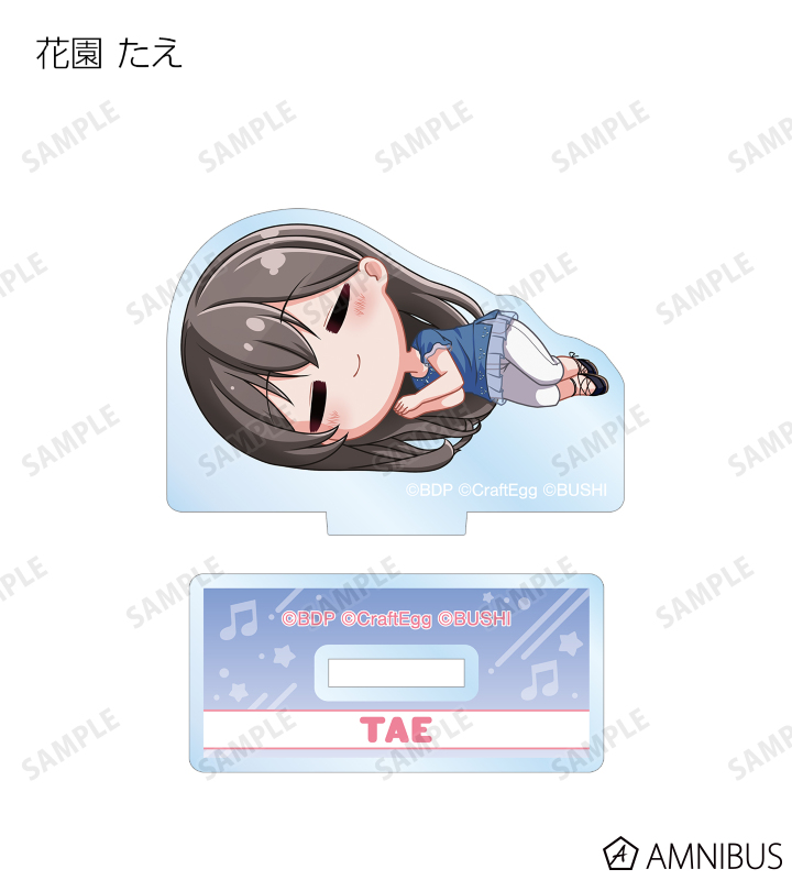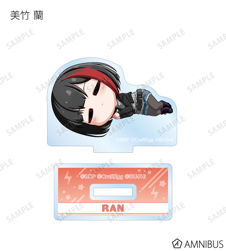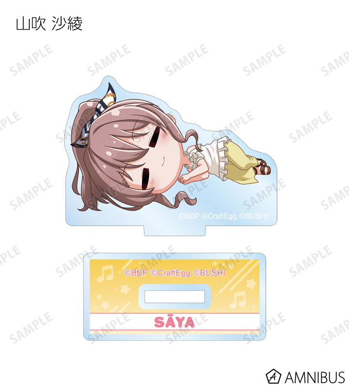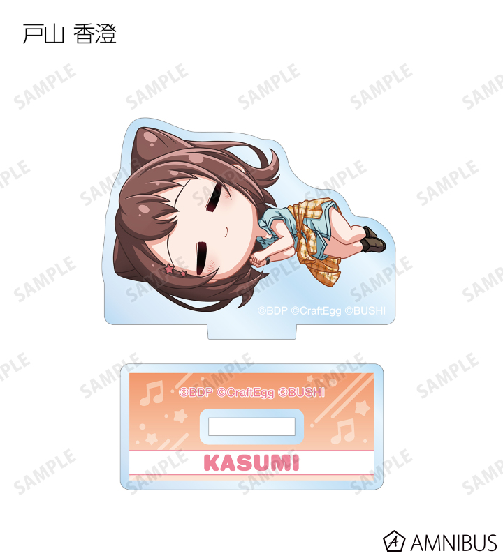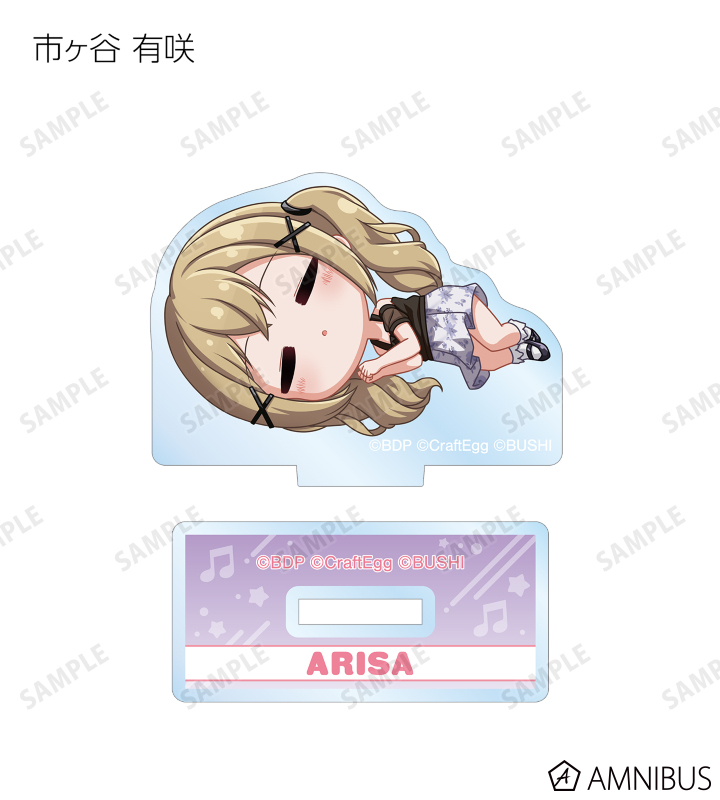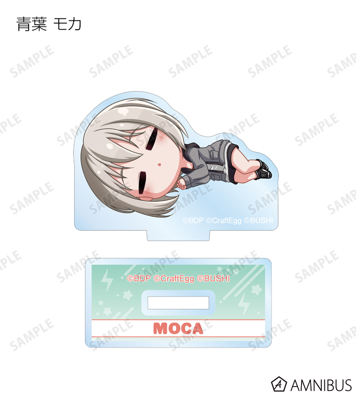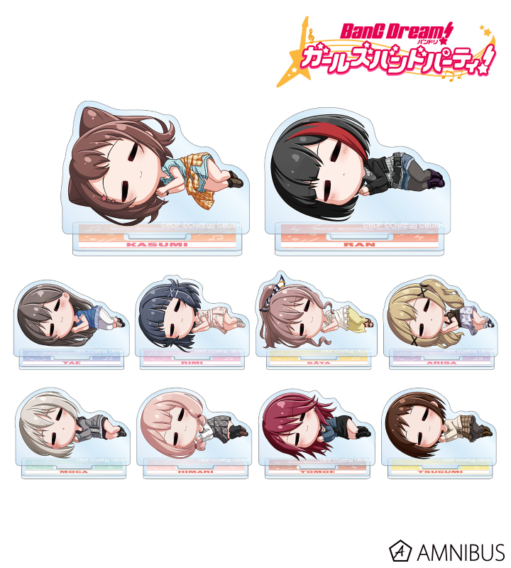 戸山 香澄、花園 たえ、牛込 りみ、山吹 沙綾、市ヶ谷 有咲、美竹 蘭、青葉 モカ、上原 ひまり、宇田川 巴、羽沢 つぐみがころんと寝ているちびキャラを新たに描き起こし、アクリルスタンドに仕上げました。