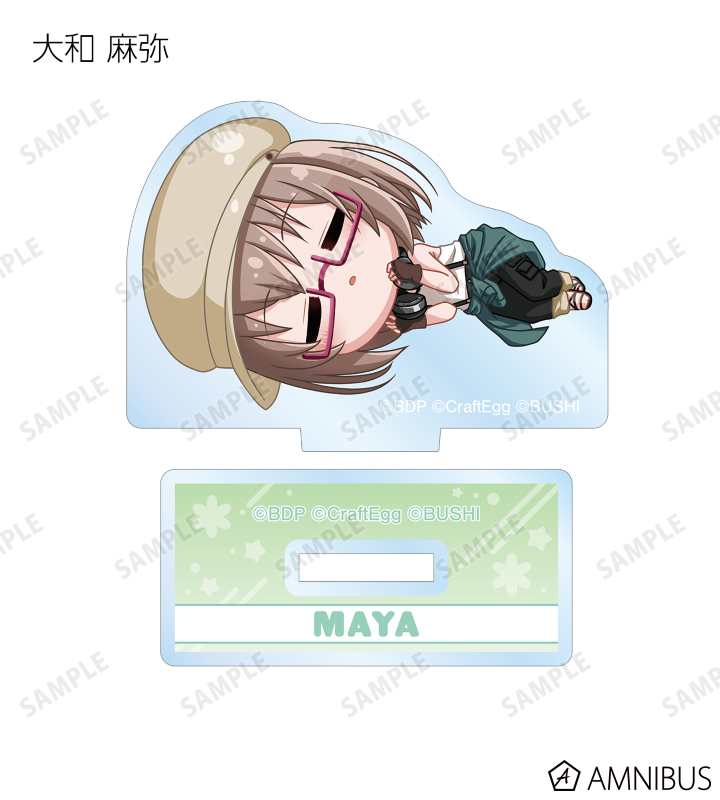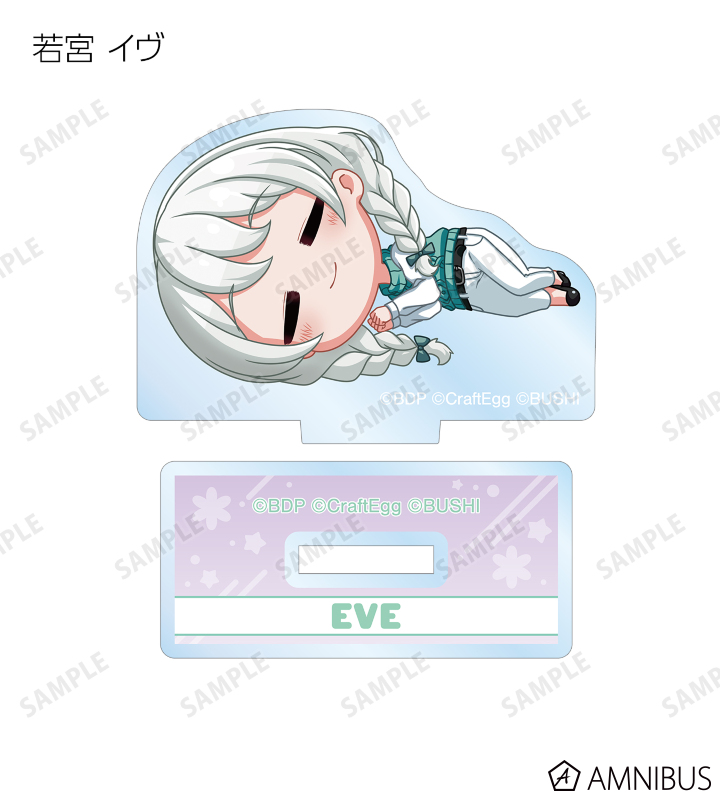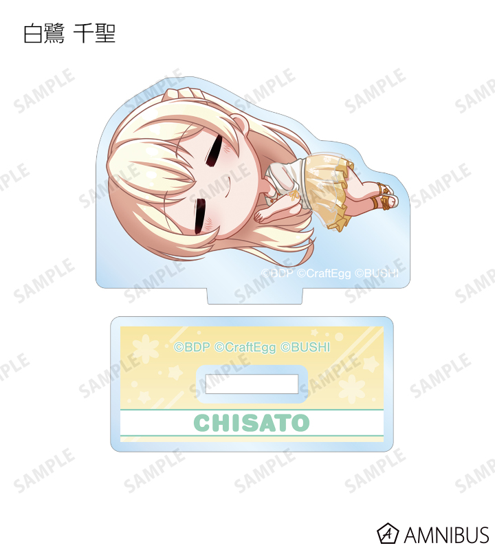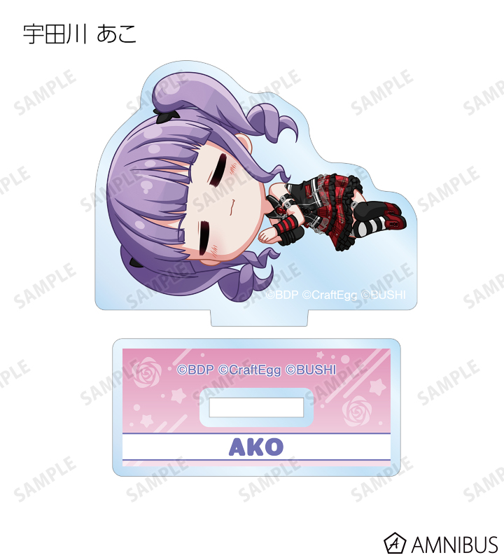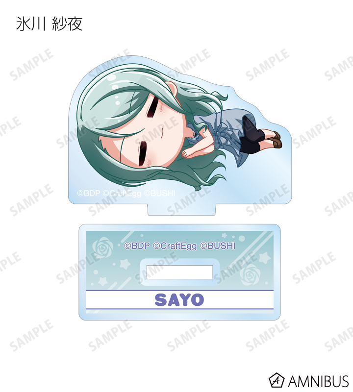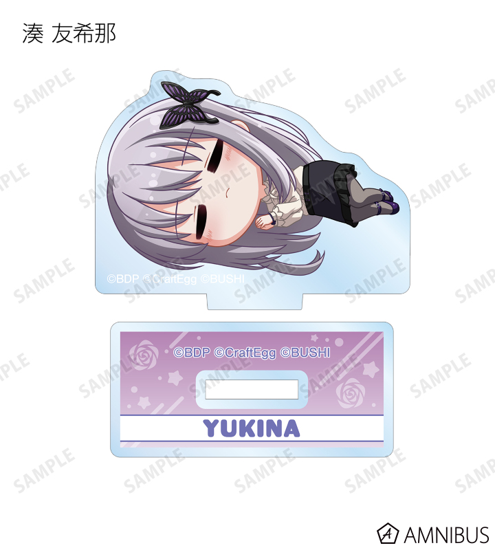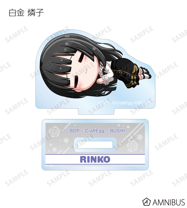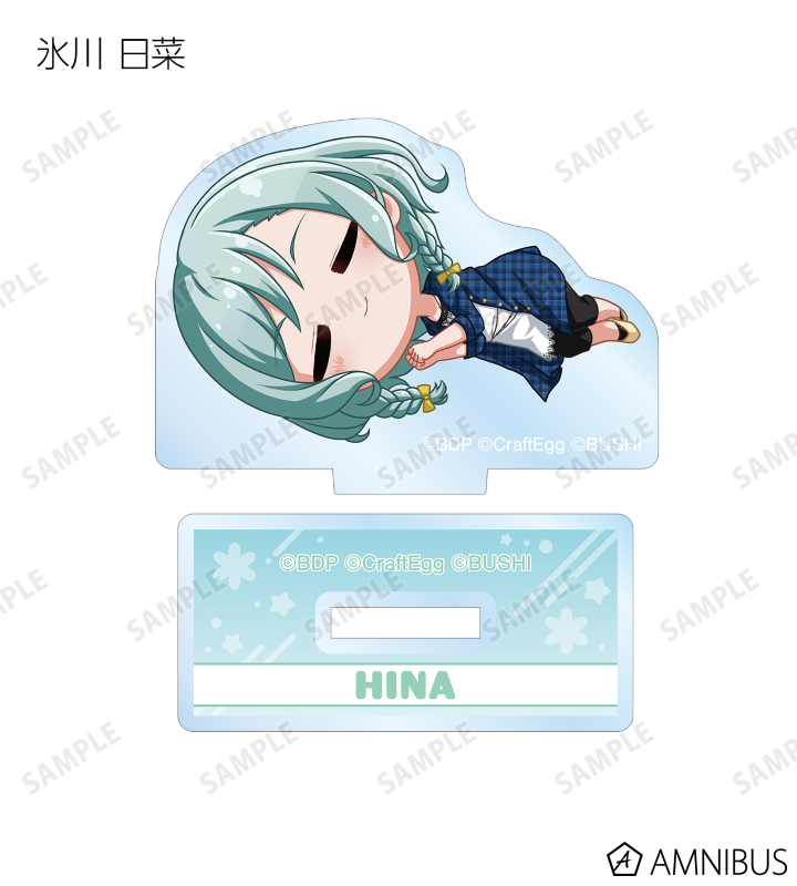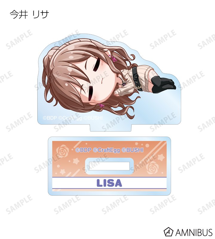 丸山 彩、氷川 日菜、白鷺 千聖、大和 麻弥、若宮 イヴ、湊 友希那、氷川 紗夜、今井 リサ、宇田川 あこ、白金 燐子がころんと寝ているちびキャラを新たに描き起こし、アクリルスタンドに仕上げました。