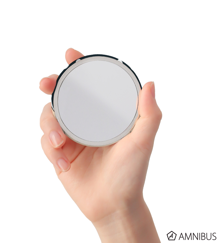 缶バッジのように見えますが、裏面がいろんなシーンで便利に使えるミラーになっております。