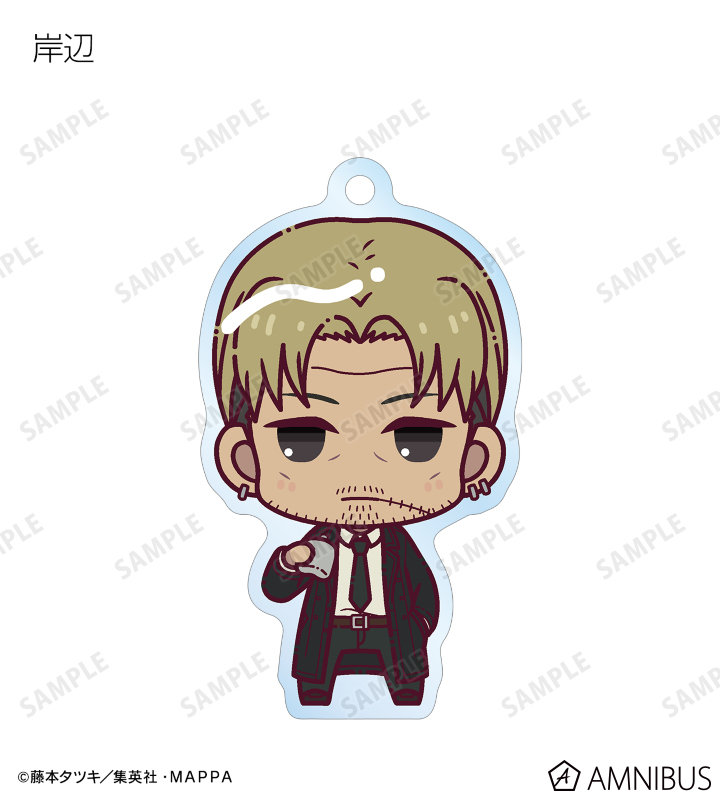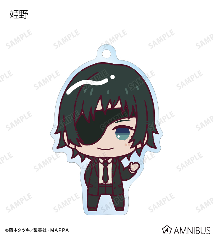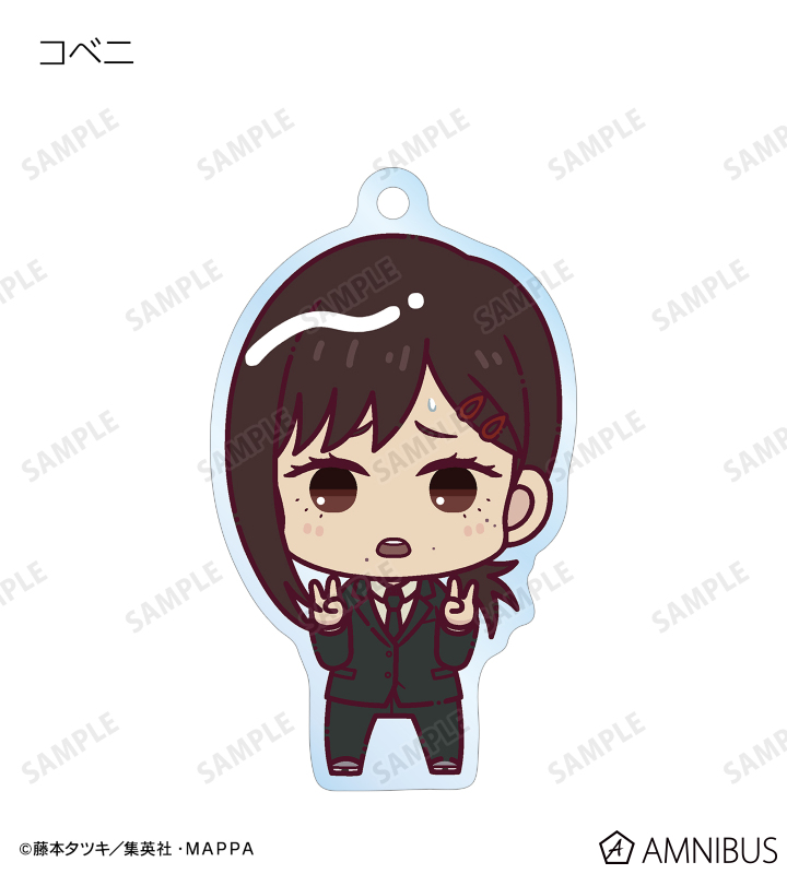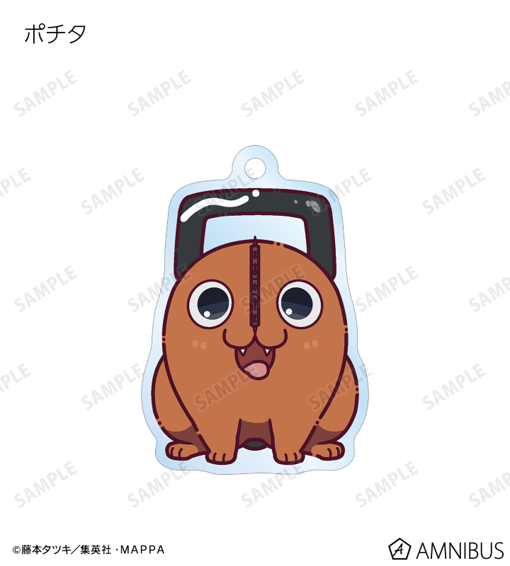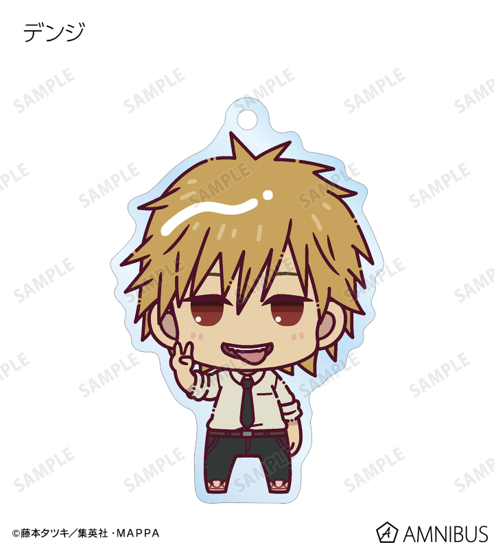 デンジ、マキマ、早川アキ、パワー、姫野、コベニ、岸辺、ポチタ、チェンソーマンがちょこんと立っているちびキャラを新たに描き起こし、アクリルキーホルダーに仕上げました。