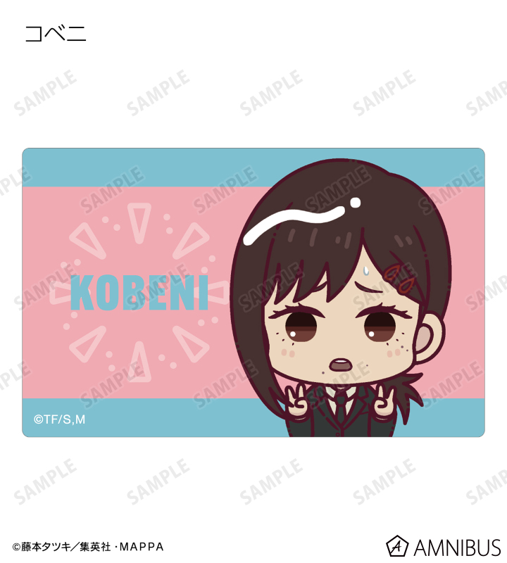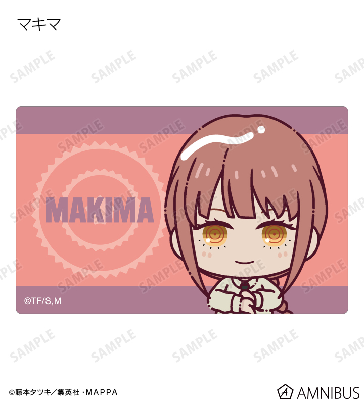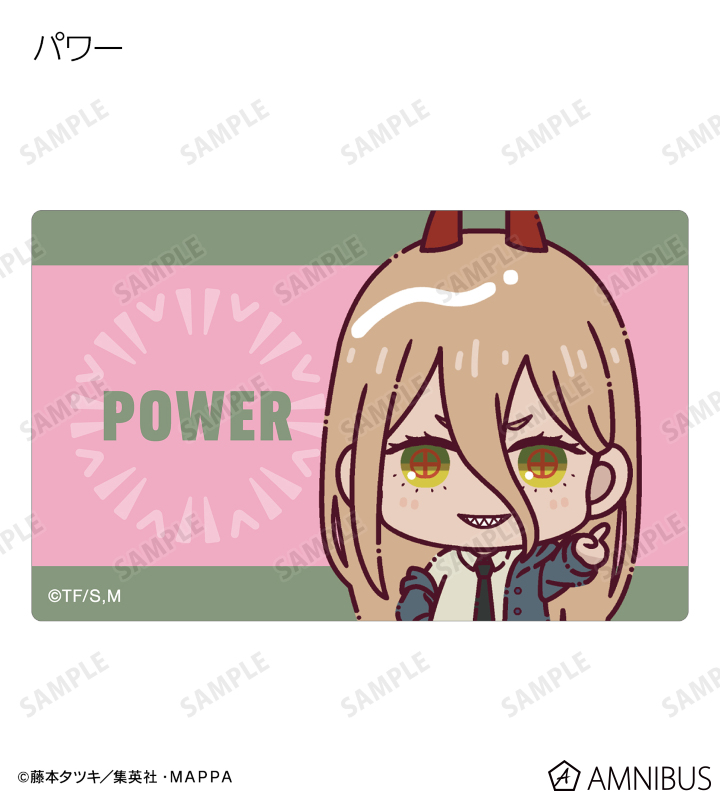 デンジ、マキマ、早川アキ、パワー、姫野、コベニ、岸辺、ポチタ、チェンソーマンがちょこんと立っているちびキャラを新たに描き起こし、カードステッカーに仕上げました。
