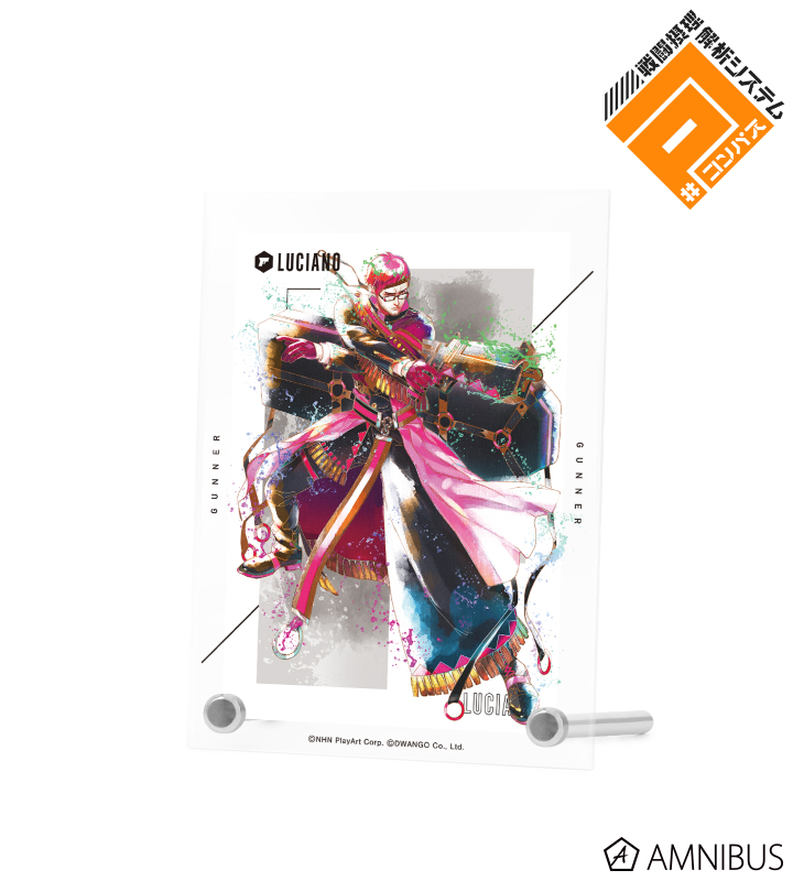 ルチアーノを新たなタッチで魅力的に表現し、ロールアイコンとともにデザインしたA6サイズのアクリルパネルに仕上げました。