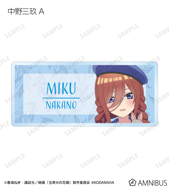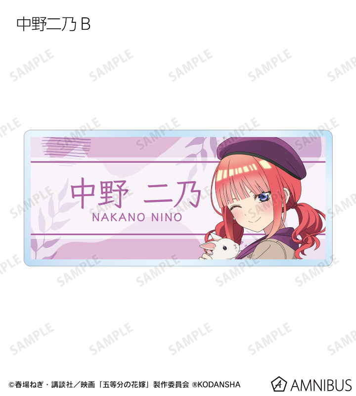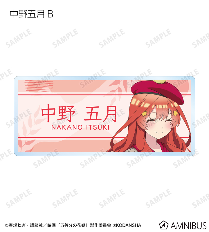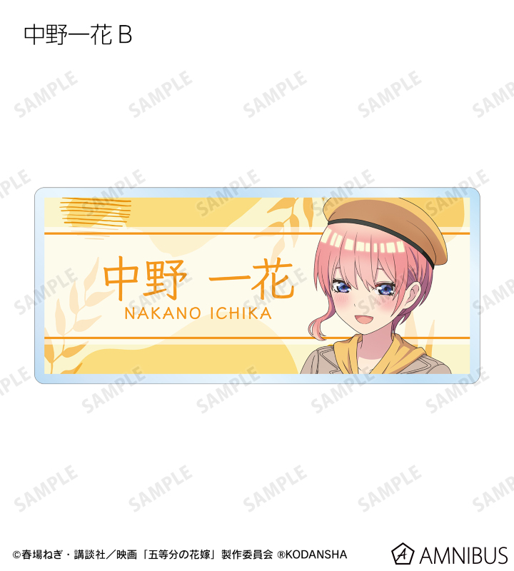 中野一花、中野二乃、中野三玖、中野四葉、中野五月の描き下ろしイラストをアクリルネームプレートに仕上げました。