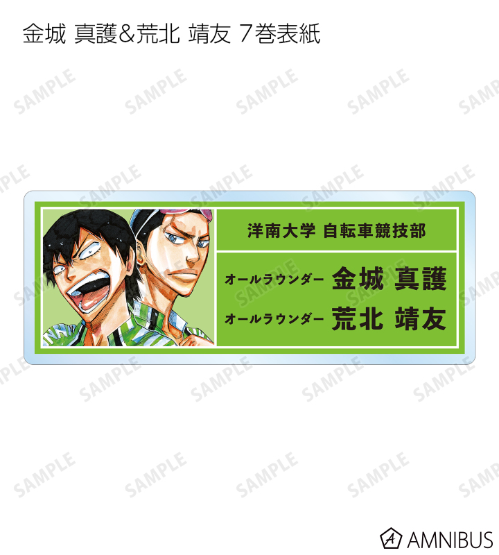 巻島 裕介、荒北 靖友、石垣 光太郎、待宮 栄吉、田所 迅、金城 真護、東堂 尽八の1~12巻表紙イラストをアクリルネームプレートに仕上げました。