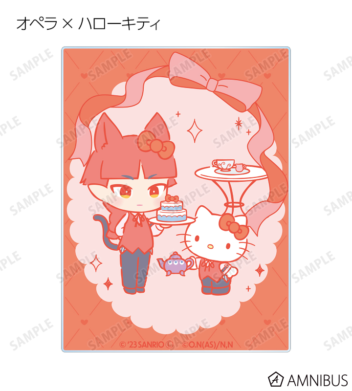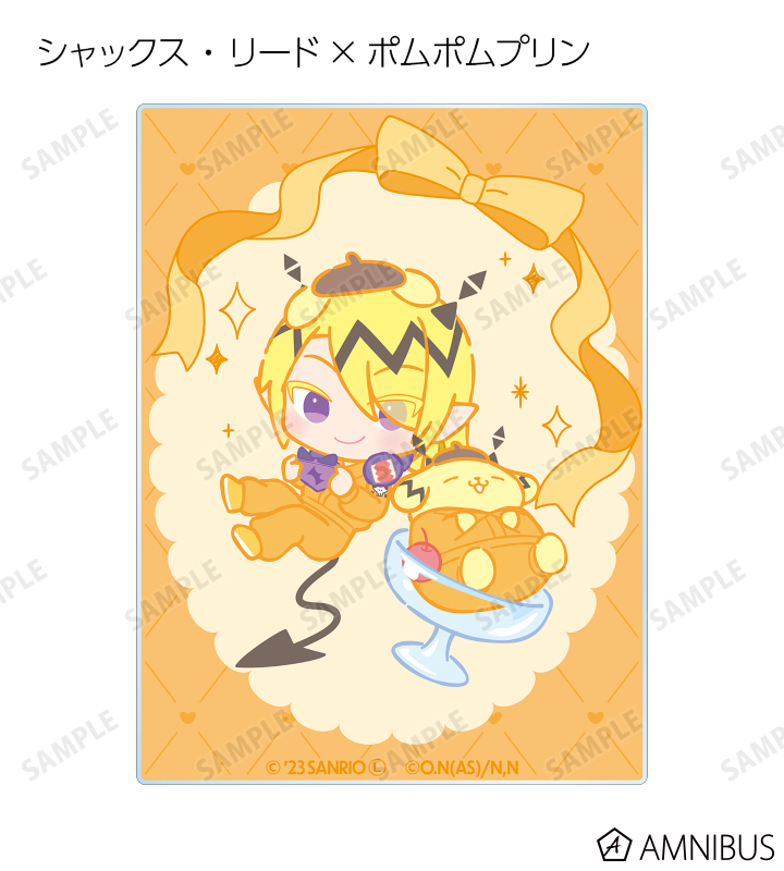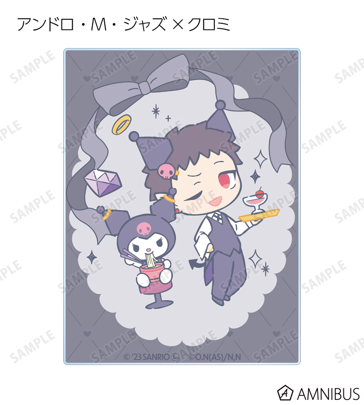 鈴木入間 ×シナモロール、アスモデウス・アリス×マイメロディ、ウァラク・クララ×ハンギョドン、アンドロ・M・ジャズ×クロミ、シャックス・リード×ポムポムプリン、オペラ×ハローキティ、ナベリウス・カルエゴ×バッドばつ丸をアクリルカードに仕上げました。