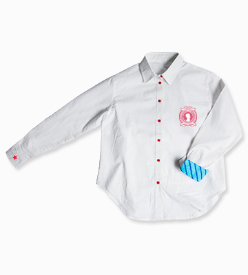 袖裏には、学年のリボン柄をリボン素材でもよく使われるサテン生地を使用し表現。