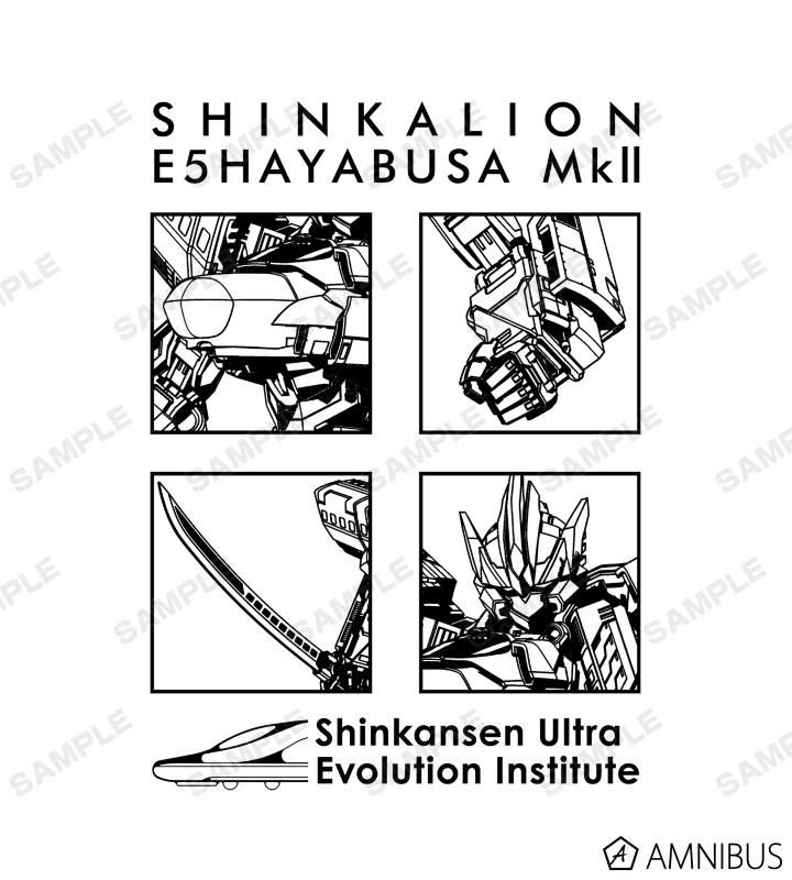 シンカリオン E5はやぶさ MkⅡをフレーミングし、機体名や新幹線超進化研究所ロゴと合わせたデザインに仕上げました。