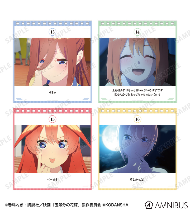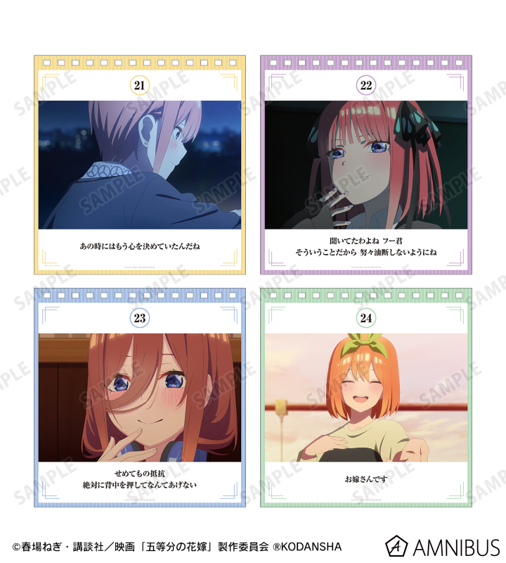 中野一花、中野二乃、中野三玖、中野四葉、中野五月の印象的なシーンを日替わりでお楽しみいただける日めくりカレンダーに仕上げました。