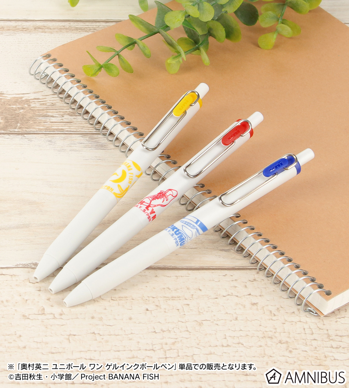 TVアニメ『BANANA FISH』×「三菱鉛筆/ユニボールワン」のコラボレーションアイテム「奥村英二 ユニボール ワン ゲルインクボールペン」の登場です。