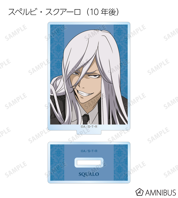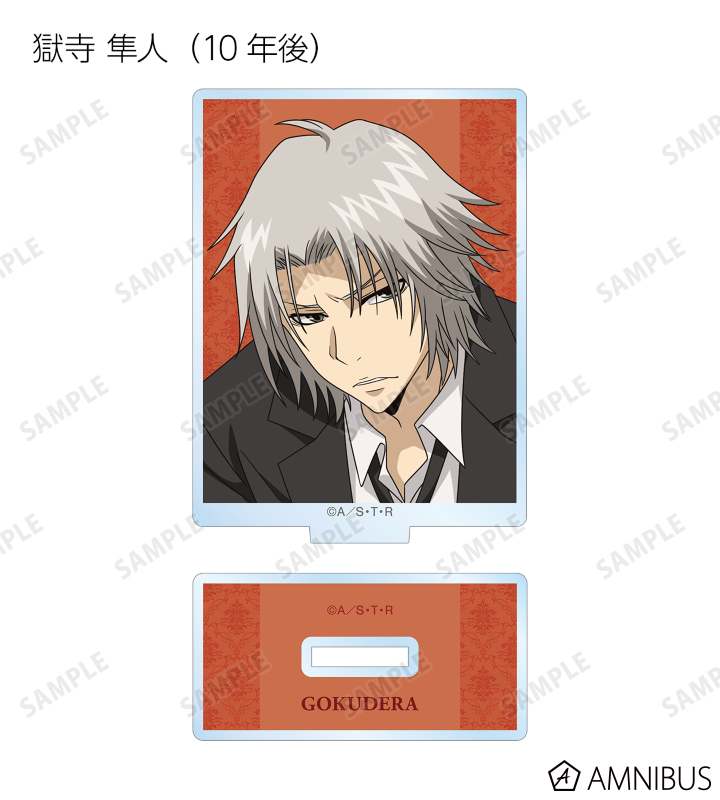 沢田 綱吉、リボーン、獄寺 隼人(10年後)、山本 武(10年後)、雲雀 恭弥(10年後)、六道 骸(10年後)、XANXUS(10年後)、スペルビ・スクアーロ(10年後)、ベルフェゴール(10年後)、フランの描き下ろしイラストをアクリルスタンドに仕上げました。