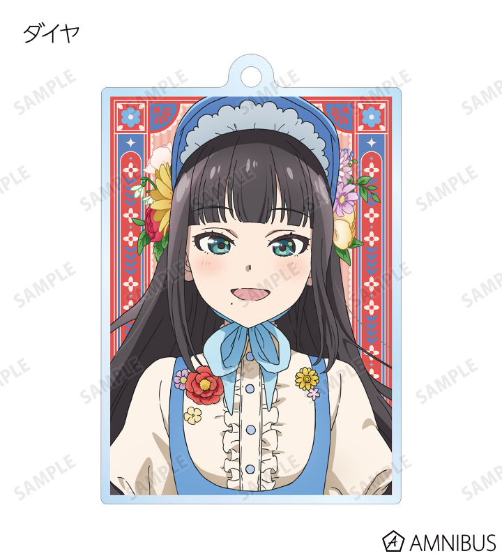 ヨハネ、ハナマル、ダイヤ、ルビィ、チカ、ヨウ、カナン、リコ、マリの描き下ろしイラストをアクリルキーホルダーに仕上げました。
