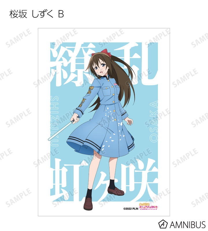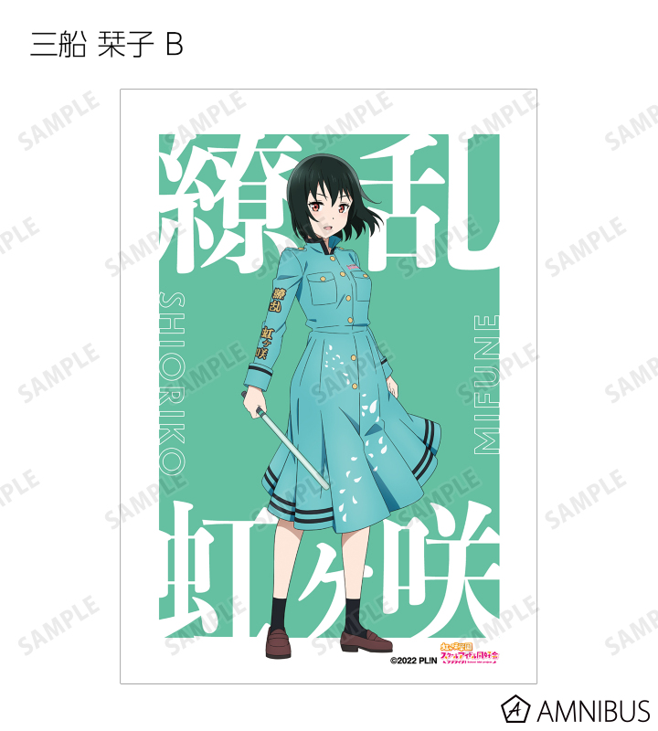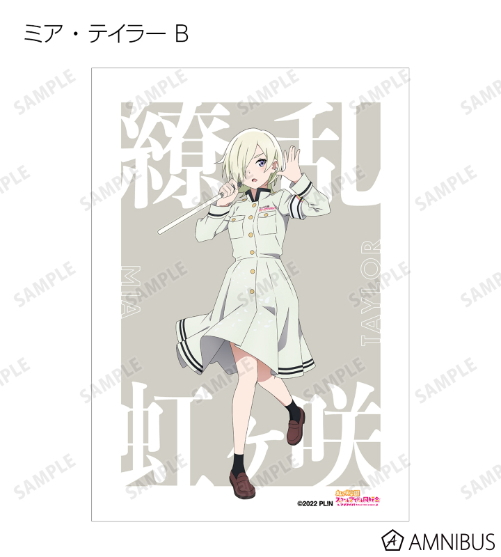 高咲 侑、上原 歩夢、中須 かすみ、桜坂 しずく、朝香 果林、宮下 愛、近江 彼方、優木 せつ菜、エマ・ヴェルデ、天王寺 璃奈、三船 栞子、ミア・テイラー、鐘 嵐珠の描き下ろしイラストをブロマイドに仕上げました。