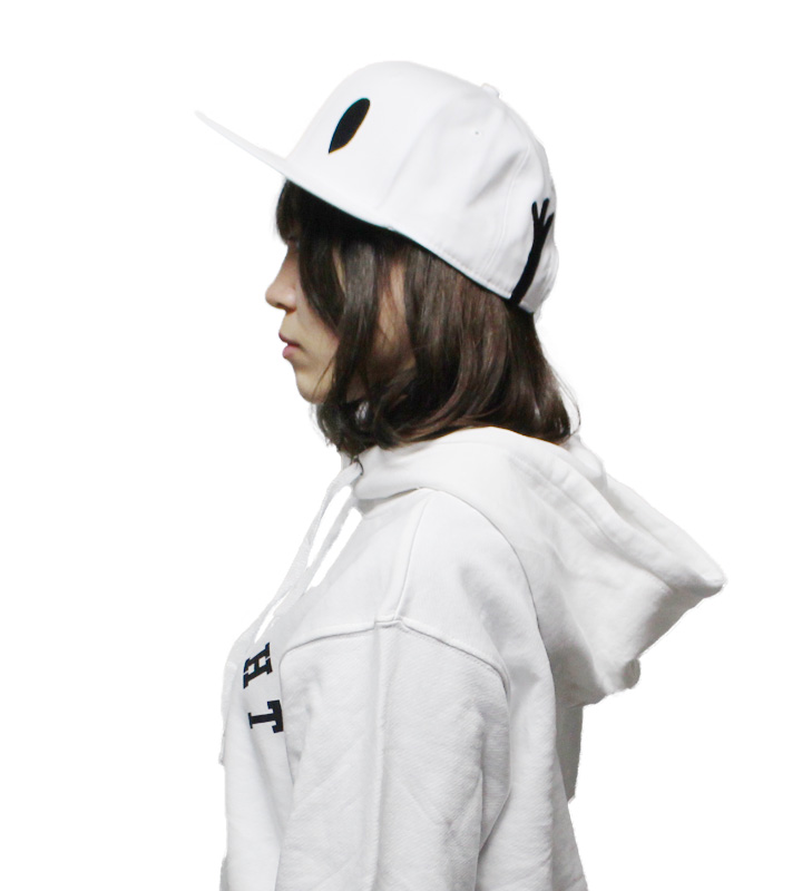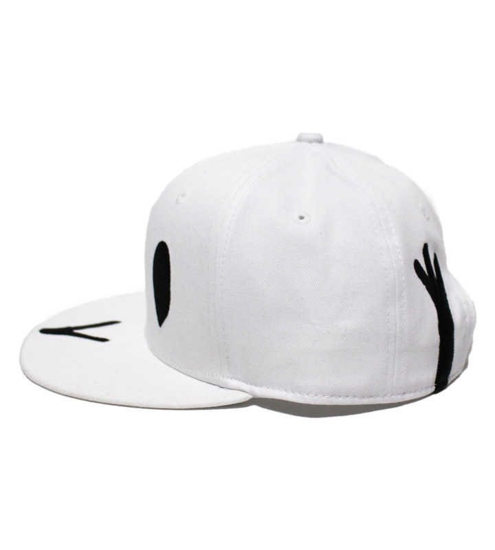 正面の目だけでなく、つば部分と後部にも刺繍を入れ、遊び心満載のキャップを仕上げました。