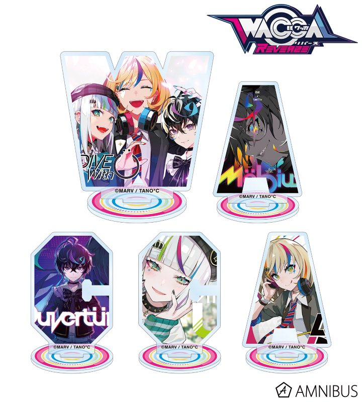 DIVE with Ü、Möbius、Ouvertüre、with U、Let you DIVE! の楽曲ジャケットイラストをアクリルスタンドに仕上げました。