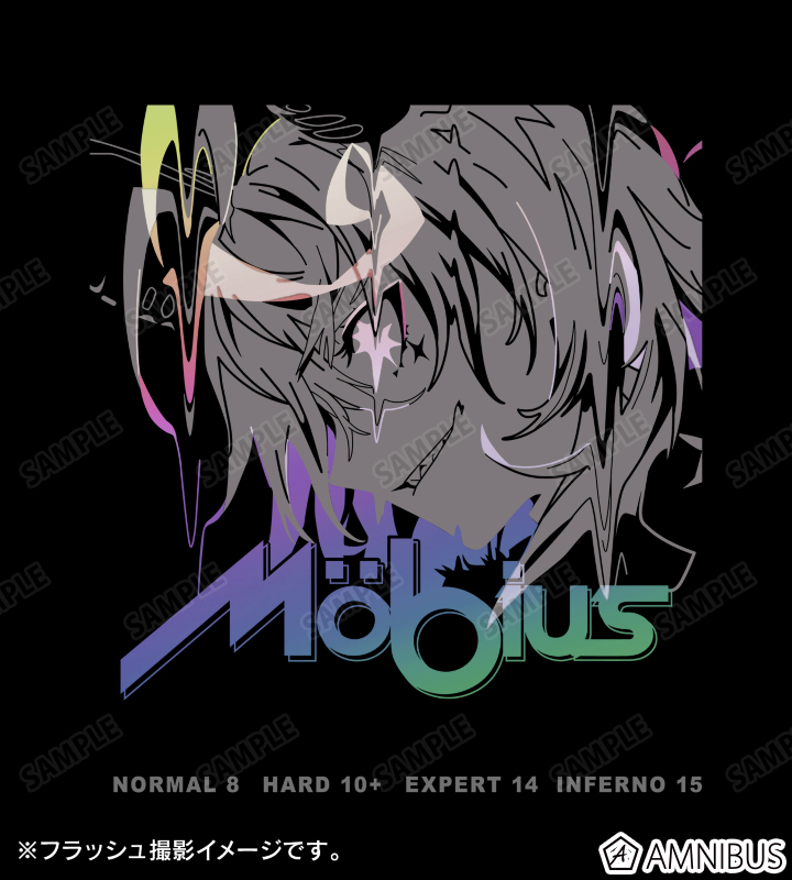 スマートフォンなどでフラッシュ撮影していただくと、Möbiusの楽曲ジャケットイラストがオーロラに光って写るTシャツです。