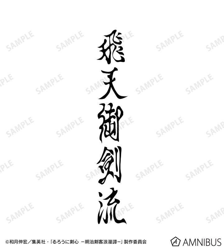緋村剣心の印象的なシーン、流儀「飛天御剣流」の文字をデザインしたトレーナーに仕上げました。