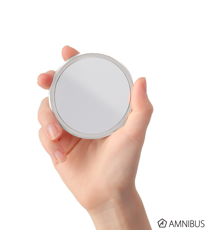 缶バッジのように見えますが、裏面がいろんなシーンで便利に使えるミラーになっております。