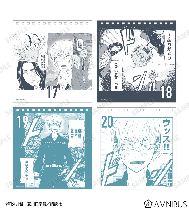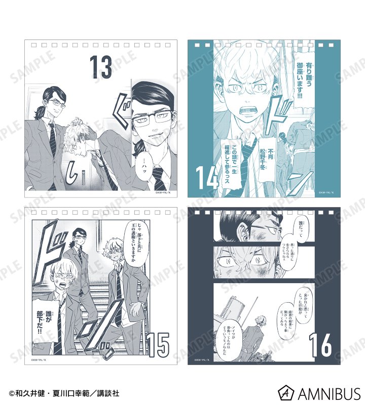 場地 圭介、松野 千冬、佐藤 龍星の原作コマを日替わりでお楽しみいただける日めくりカレンダーに仕上げました。
