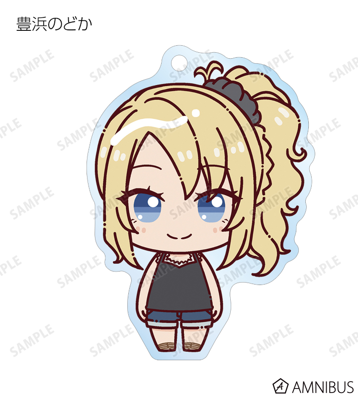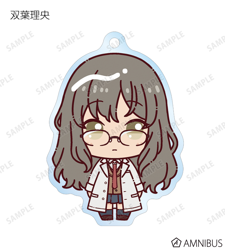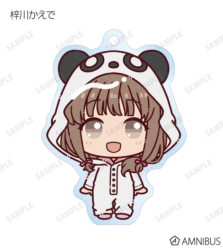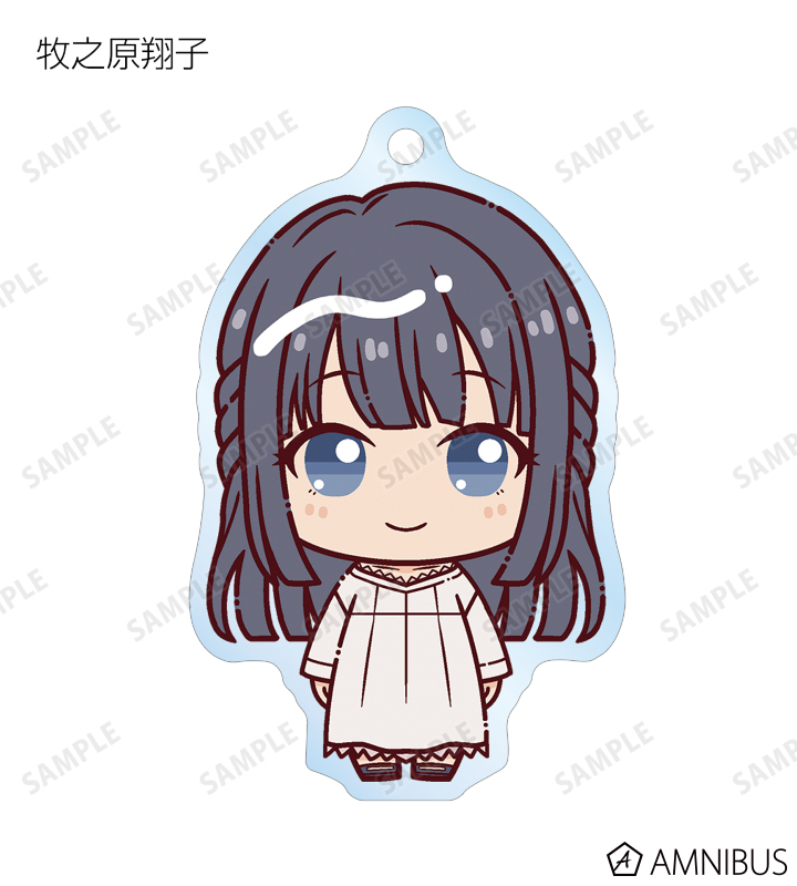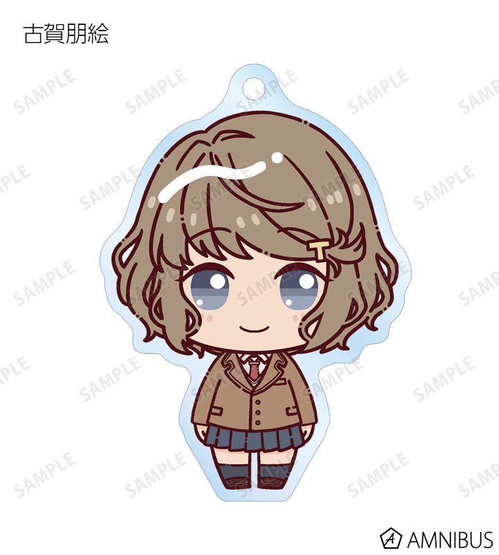 桜島麻衣、古賀朋絵、双葉理央、豊浜のどか、梓川かえで、牧之原翔子がちょこんと立っているちびキャラを新たに描き起こし、アクリルキーホルダーに仕上げました。