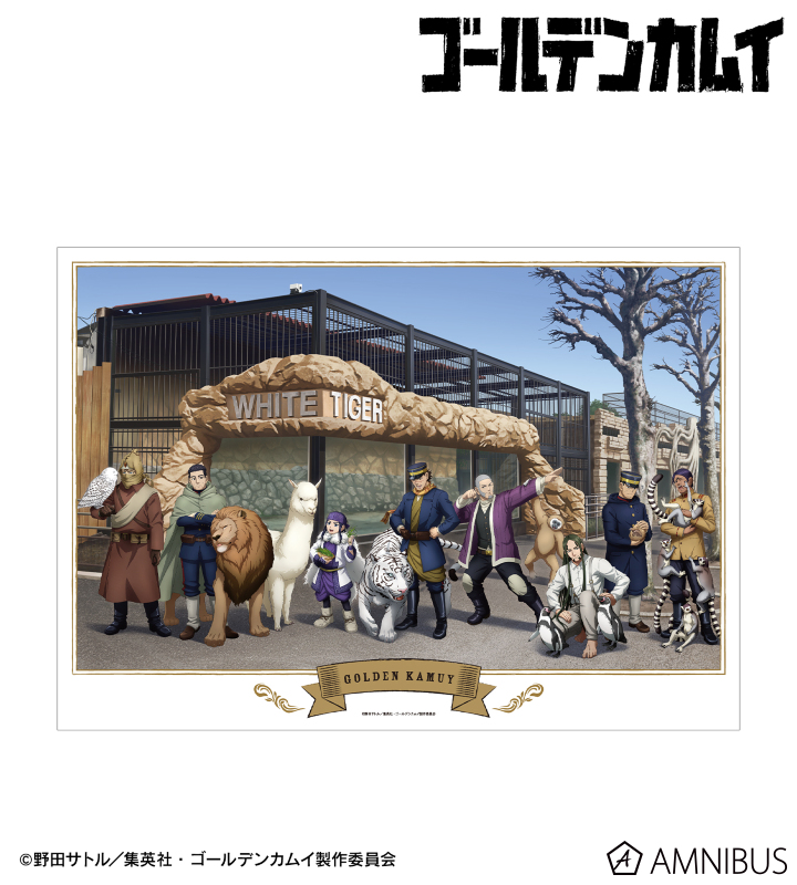 TVアニメ『ゴールデンカムイ』×「東武動物公園」のコラボレーションアイテム「描き下ろし 集合 動物とのふれあいver. A3マット加工ポスター」の登場です。