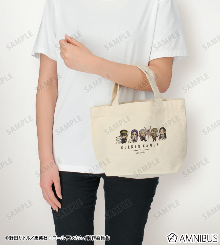 TVアニメ『ゴールデンカムイ』×「東武動物公園」のコラボレーションアイテム「集合A ちびキャラ 動物とのふれあいver. ランチトートバッグ」の登場です。