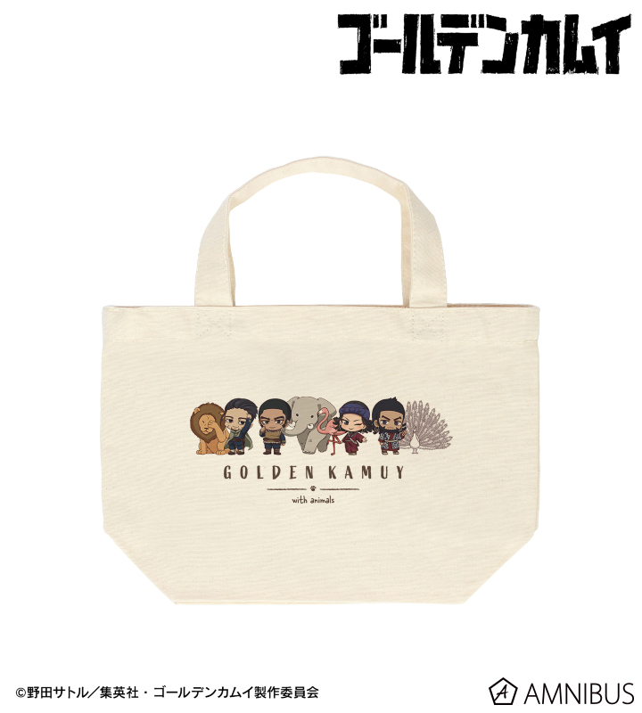 TVアニメ『ゴールデンカムイ』×「東武動物公園」のコラボレーションアイテム「集合C ちびキャラ 動物とのふれあいver. ランチトートバッグ」の登場です。