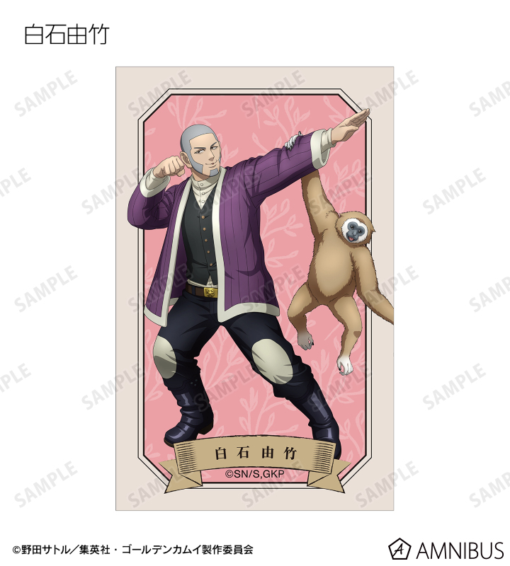 杉元佐一、アシㇼパ、白石由竹、尾形百之助、月島軍曹、鯉登少尉、ヴァシリ、海賊房太郎の描き下ろしイラストをイラストカードに仕上げました。