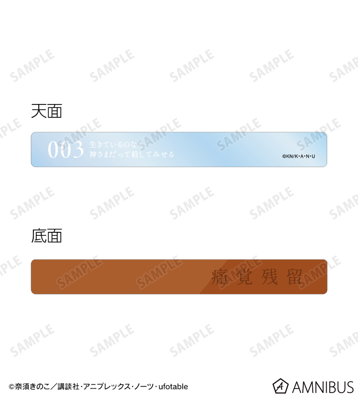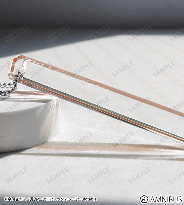 章タイトル、作中台詞を、昔ながらのホテルのルームキーをイメージしたアクリルキーホルダーに仕上げました。
